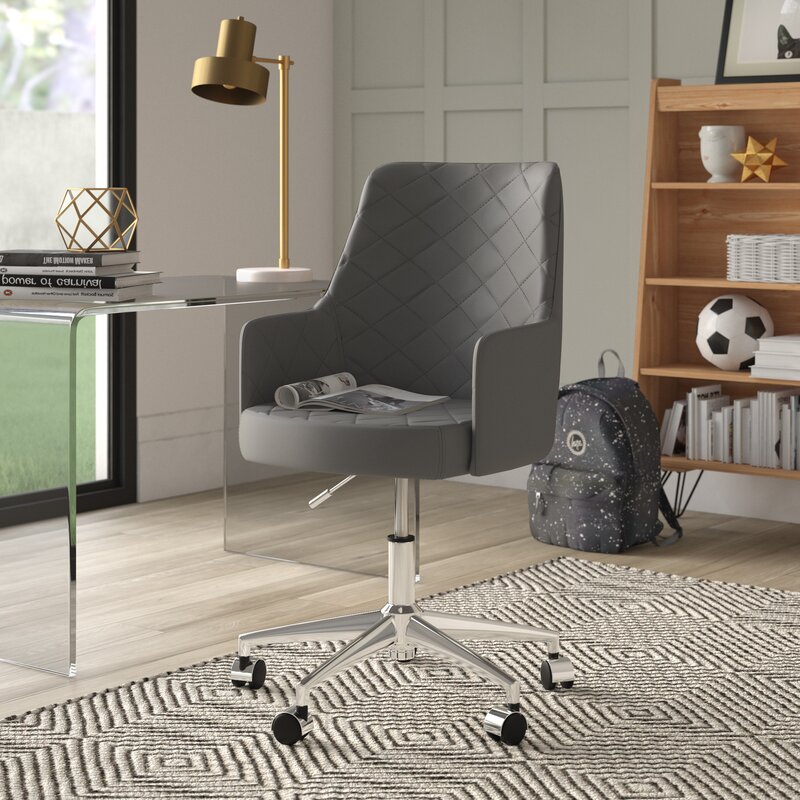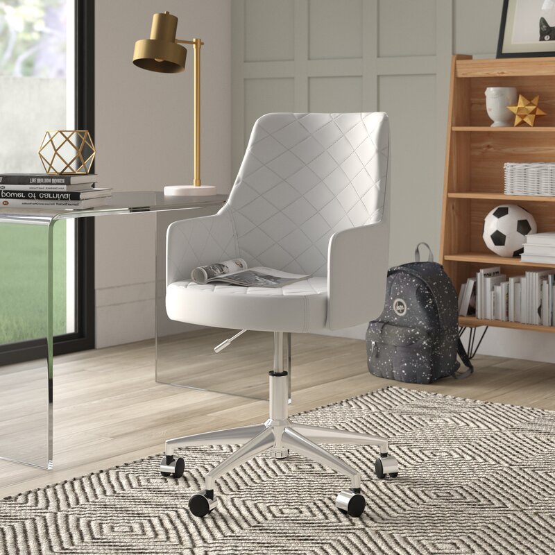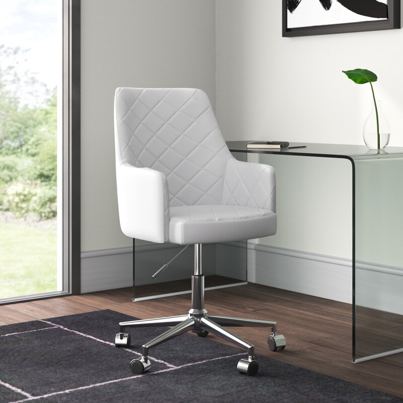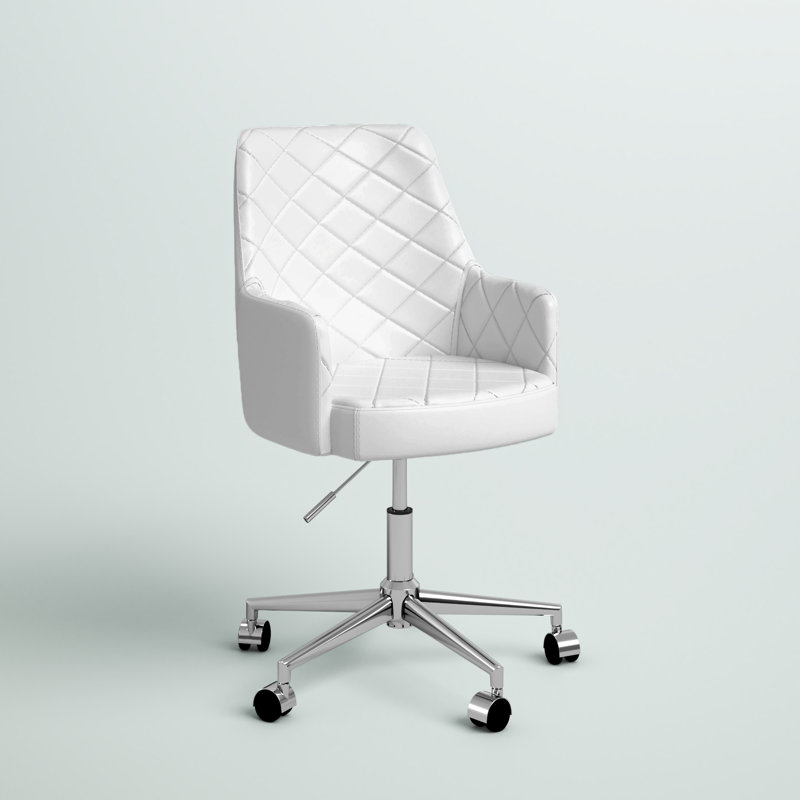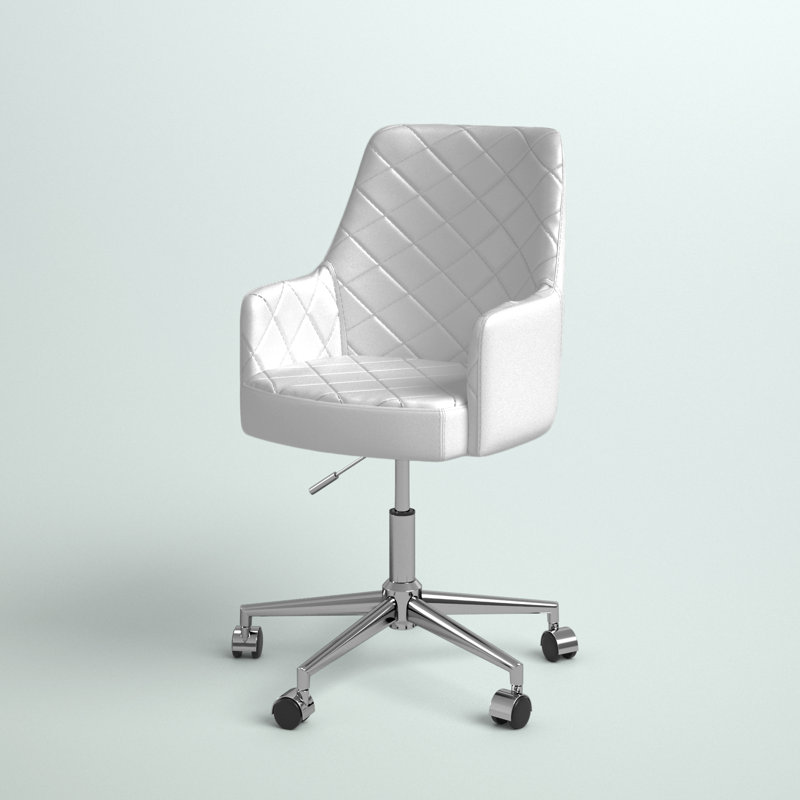Do your work in style when you roll this sleek chair up to your office desk. Wrapped in neutral-toned faux leather upholstery and elegantly accented with diamond tufts, this chair will make a statement in any space. It is also founded on a chromed base for an added pop of chic appeal. But this chair is more than just stylish. It also has an adjustable height design and caster feet, so you can be comfortable while working. Pull this chair up to a simple clean-lined wood desk in your home office, then build on the modern style by rolling out a white shag rug and hanging abstract art.