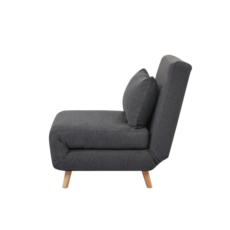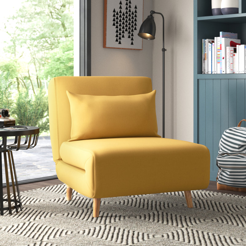 This convertible chair is ideal for smaller living spaces like apartments, lofts, and dorms: It easily pulls down to form a chaise or bed for overnight guests or a spot to lounge in front of the TV. A solid pine wood frame rests upon tapered dowel legs for a mid-century modern feel. The rest of this chair is wrapped in sleek, solid-hued upholstery to complement your room’s color scheme. It’s also filled with foam and sinuous springs to provide all the support you need. A single toss pillow is included as a spot to rest your head or cushion your lower back.