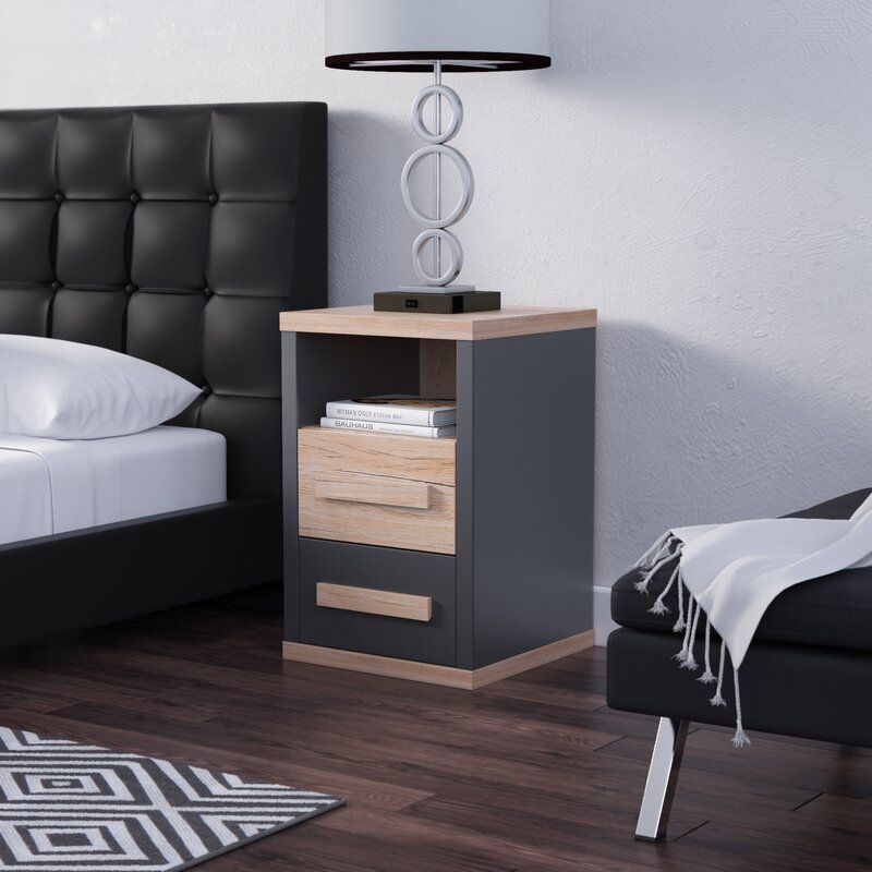 This two-drawer nightstand is sure to delight even the hardest-to-please teenager. It is crafted from engineered wood with a sharp-looking, two-tone finish in dark gray and white and sits solidly on the floor. The two soft-close drawers have oversized pulls and open to reveal plenty of out-of-sight storage for nighttime essentials, like glasses and chargers. And, the cubby calls out for your stack of must-reads. What’s more, the top accommodates a reading light with room to spare. This table is also well-suited for use as an end table in your living room or den. Full assembly is required.