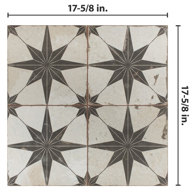 Imported from Spain, our Kings series star 18″ x 18″ Ceramic patterned wall & floor tile radiates old-world European elegance. Designed by interior architect and furniture designer Francisco Segarra, this tile is a true reflection of vintage industrial design. Realistic imitations of scuffs and spots that are the marks of well-loved, worn, century-old tile bring rustic charm to any interior setting. These rustic scuffs and spots convince us that this tile is truly aged. Available in 9 print variations that are randomly scattered throughout each case, the variation throughout each tile mimics an authentic aged appearance. Save time and labor spent arranging smaller square tiles and instead install these durable ceramic slabs, which have four 8.75″ squares separated by scored grout lines. The scored grout lines can be grouted with the color of your choice to further customize your installation. Its durable and glazed features make this tile an ideal choice for indoor commercial and residential use, including in kitchens, bathrooms, showers, and entryways. Tile is the better choice for your space. This tile is made from natural ingredients, making it a healthy choice as it is free from allergens, VOCs, formaldehyde, and PVC.