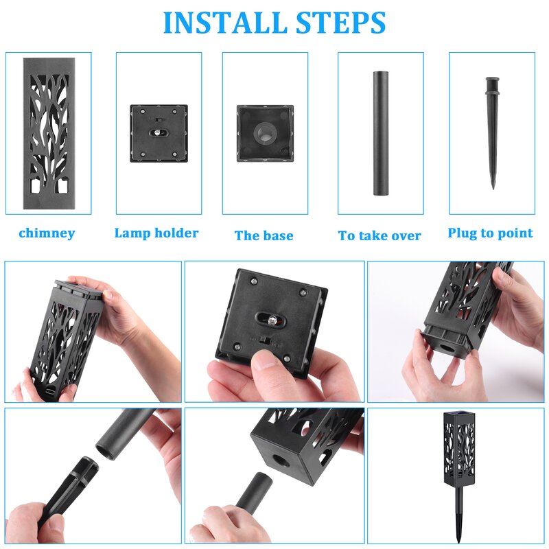 No addition tools or wiring required and directly insert the landscape lights into soil for complete installation. Note: Turn the switch ON before installation.