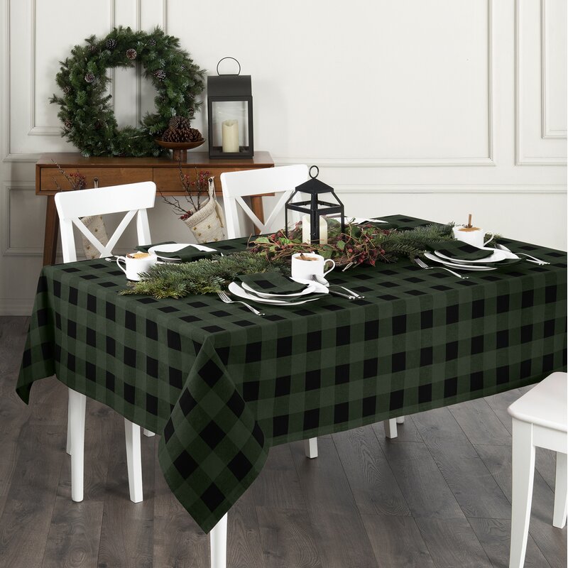 This fashionable tablecloth is made from premium quality cotton and features the perfect buffalo check pattern at Christmas to create the best holiday look. Excellent for events, parties, and everyday décor use during the holiday season. Soft cotton can be easily ironed to release stubborn creases and make your tablecloth wrinkle-free. Delicately hemmed edge adds a finished look and prevents wear and tear. Coordinate all the items in the living collection including napkins, placemats, pot holders, kitchen towels, kitchen mats, and window treatments.
