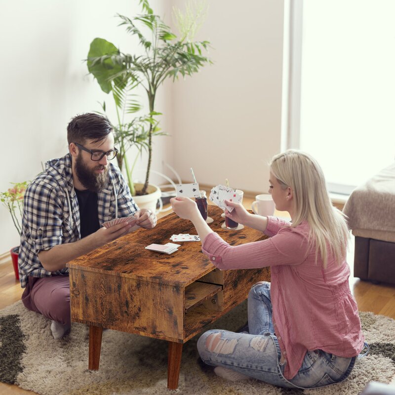 The large hidden compartment beneath the tabletop is enough to store your often-used items like laptop, chess, and remote controllers, keeping them away from dirt.