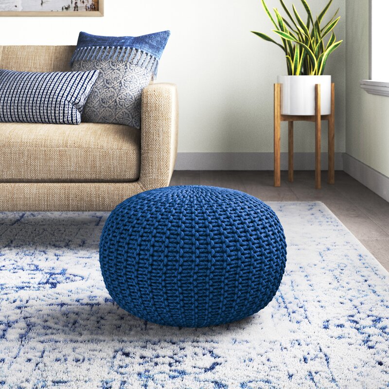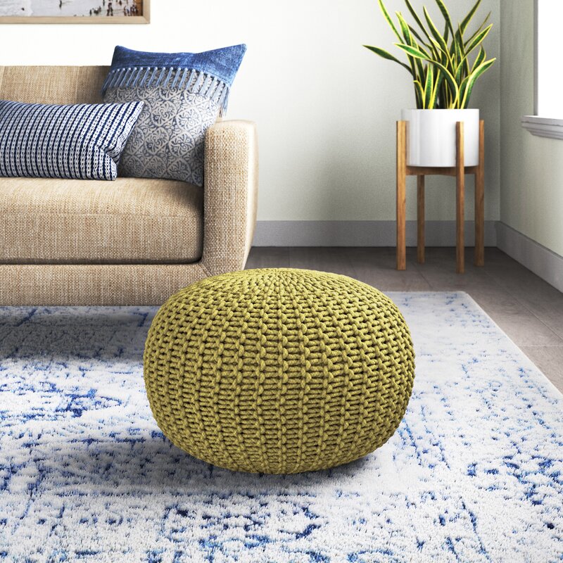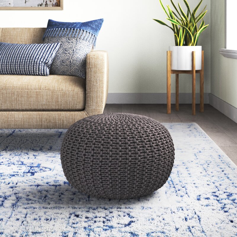 We love how versatile this pouf is, it can be your footrest, coffee table, or a spare seat at game night. The cover is made from 100% cotton and features a knotted, woven design that adds some textural appeal. This pouf is filled with poly beads that provide just the right amount of cushion under your seat or feet. It measures 14″ tall, making it an ideal spot to rest your book, or your feet as you read said book.