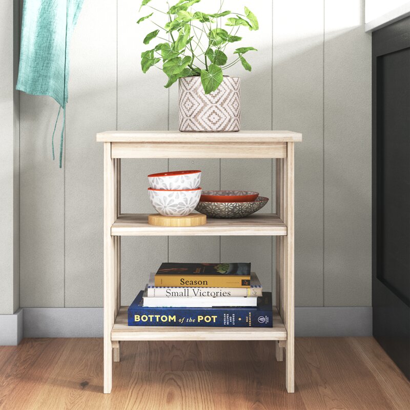 This printer stand gives you a platform for office supplies and other accessories to keep your WFH space organized. It also works as a nightstand or end table in any room. Crafted from solid rubberwood, it comes unfinished, so the wood’s natural grain is highlighted for a bold, boho look we love. Freestanding and full of clean lines, it features side slats that give off an open, breezy vibe. The tabletop and two lower shelves hold up to 120 lbs. total.