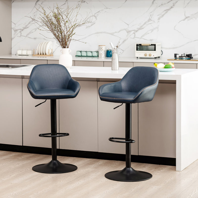 These barstools were perfect for our farmhouse kitchen. They are sturdy, and we love how they adjust to each person’s liking. The leather fabric has a nice stitched finish. We would definitely recommend as they are better than expected!