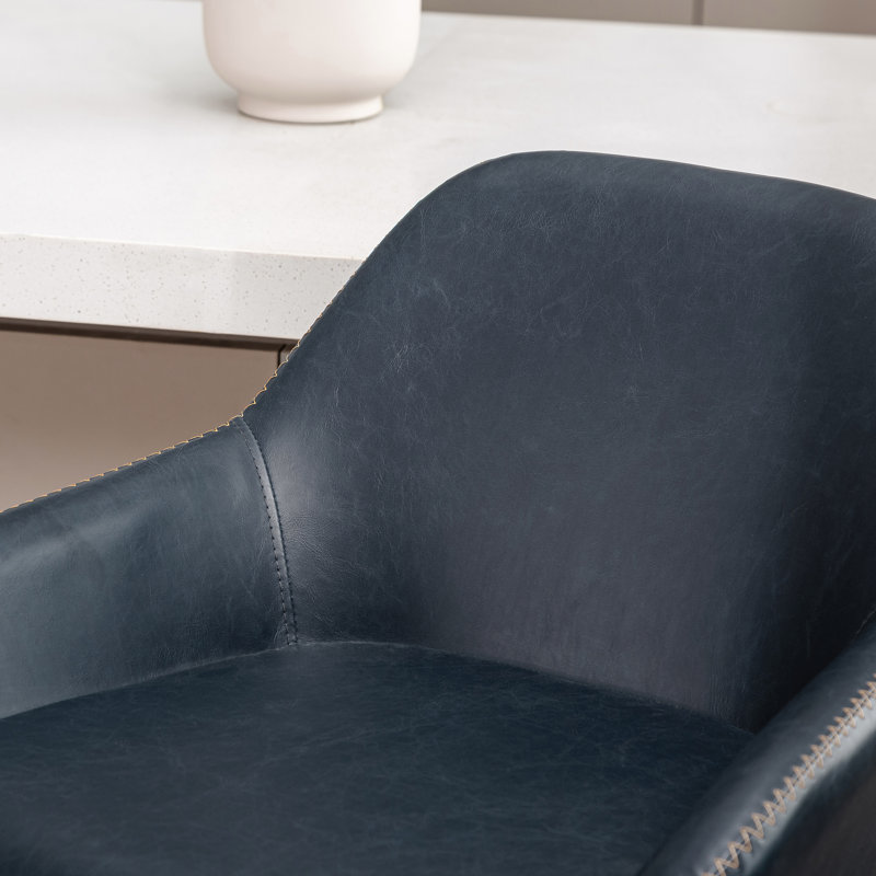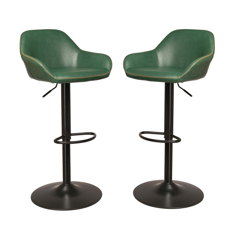 This 2-piece set of swiveling bar or counter stools completes your kitchen or home bar with a sleek, rustic mix of materials. Each is crafted from steel with an elegant pedestal base. The matching design features a bucket seat with flared arms and a full back, upholstered in leather-like polyurethane with playful, rick-rack stitching along the perimeter. We love that these bar or counter stools also have built-in ring footrest and swiveling function make it easy to relax on this barstool.