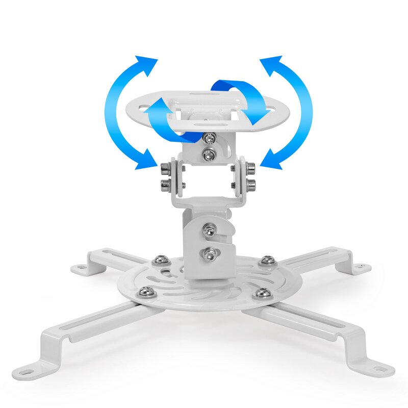 This premium projector mount is ideal for use in a home or office. This durable, all-metal construction unit has a universal mounting pattern that fits almost all projectors up to 30 pounds. The low profile design holds the projector approximately 6 inches from the ceiling to keep it out of the way and is a true space saver. This mount is loaded with versatile features such as +15 to -15 degree tilt (pitch), a dynamic 360 degree rotation (left to right), side shift, and roll capability. This item was designed for easy installation with user-friendly construction and a main component that is pre-assembled right out of the box. The ceiling mounted base is equipped with convenient quick connect hooks so you can easily attach or detach the projector safely. This unit comes with the projector mount, mounting hardware, and installation instructions.