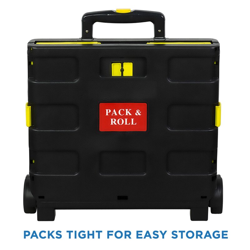 This lightweight rolling 55 lb. Capacity Hand Truck Dolly folds for easy stowing. You can store it in the trunk of your vehicle, under a bed, in a closet, storage rooms or garages. Unfolds in seconds and provides 1.2 cubic feet of space. Rust-proof aluminum telescoping handle and polypropylene body make it rugged and durable. It’s carrying capacity of 55 lbs makes it your go-to carrier for any task. Premium rubber wheels roll smoothly on any surface.