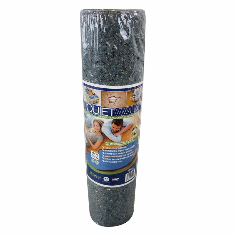 Designed for floating floor materials, QuietWalk Laminate Floor Underlayment (100sq.ft./roll) is specially processed to cushion the floor to absorb sound, reducing unwanted noise. This helps make floating floors sound more like fastened wood. Although it can be installed over wood or concrete subfloors, the quiet walk can manage moisture that surfaces in the form of vapors that naturally come up from concrete subfloors. Since quiet walk and concrete are both “breathable” capillary products, vapors that are emitted will never accumulate under the pad into harmful moisture, while the attached vapor barrier protects the overlying flooring from any attacking moisture. With quiet walk flooring underlayment, you get better moisture protection, as the fibers manage serious moisture concerns.