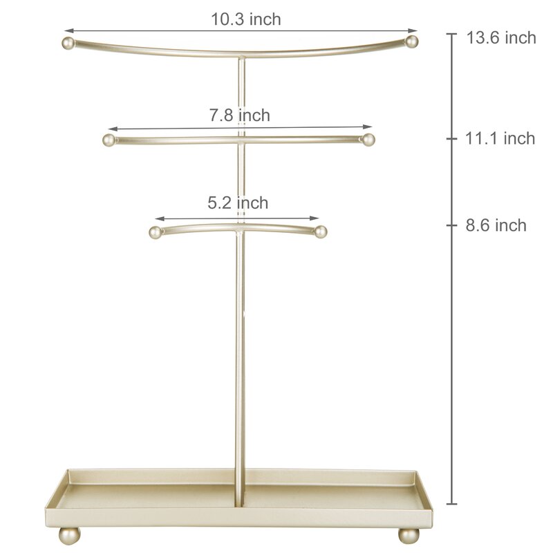 8 reviews for Curved 3-Tier T-Bar Organizer with Tray Jewelry Stand