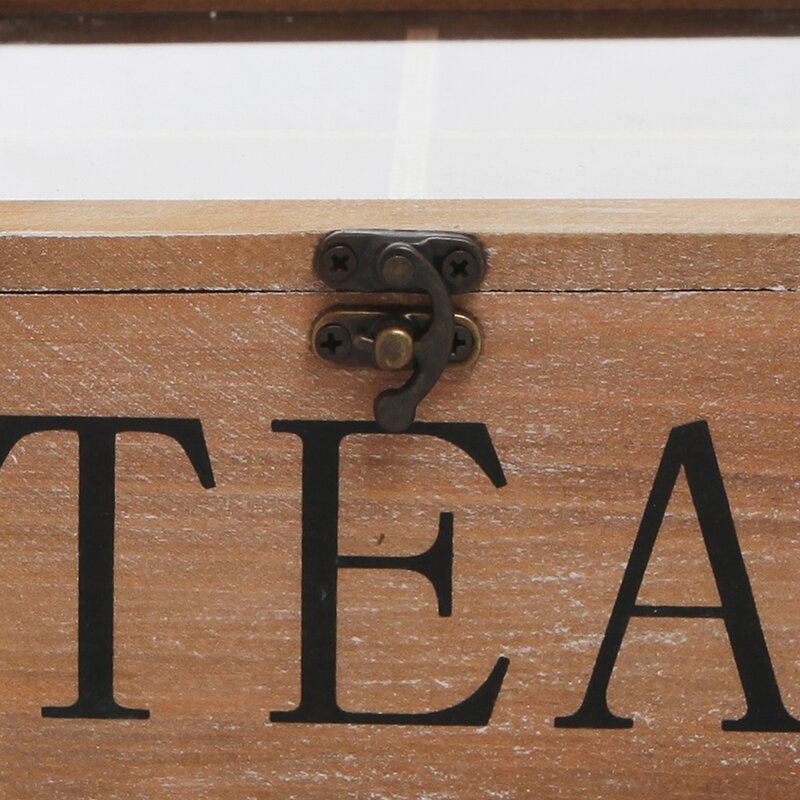Keep your tea bags and tea accessories organized with this charming rustic storage chest. 4 separate compartments make it easy to separate and sort your teabags. The sturdy wooden structure features a rustic-style finish as well as the word TEA printed on the front panel, and the hinged top lid comes with a clear acrylic panel that makes it easy for you to locate your favorite teas at a glance. Set this chest atop your kitchen counter, dining table, or coffee table to keep your collection of tea bags organized and close at hand when you and your guests want tea.