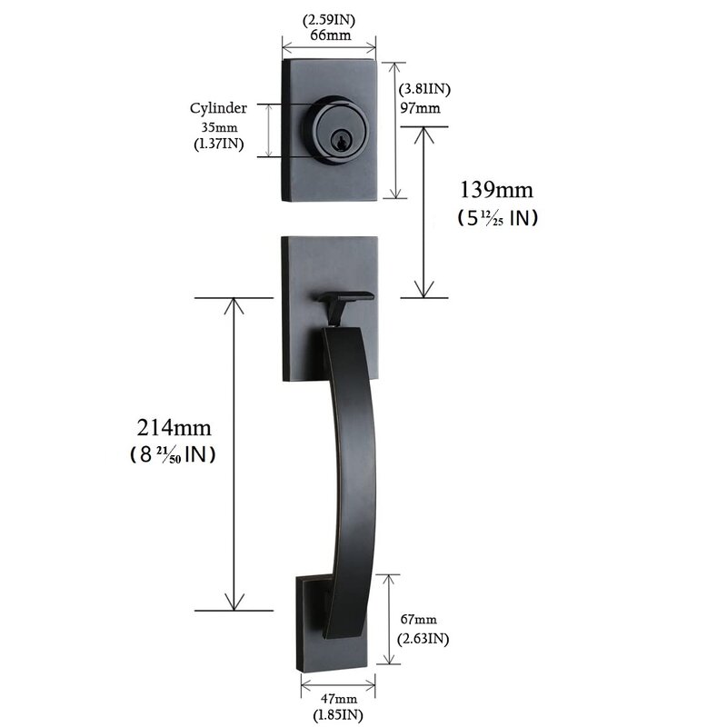Exactly what I expected and wanted.Sizedimension worked perfectly to my existing door holes as this was a replacement handle set. Sleek look and easy to install.
