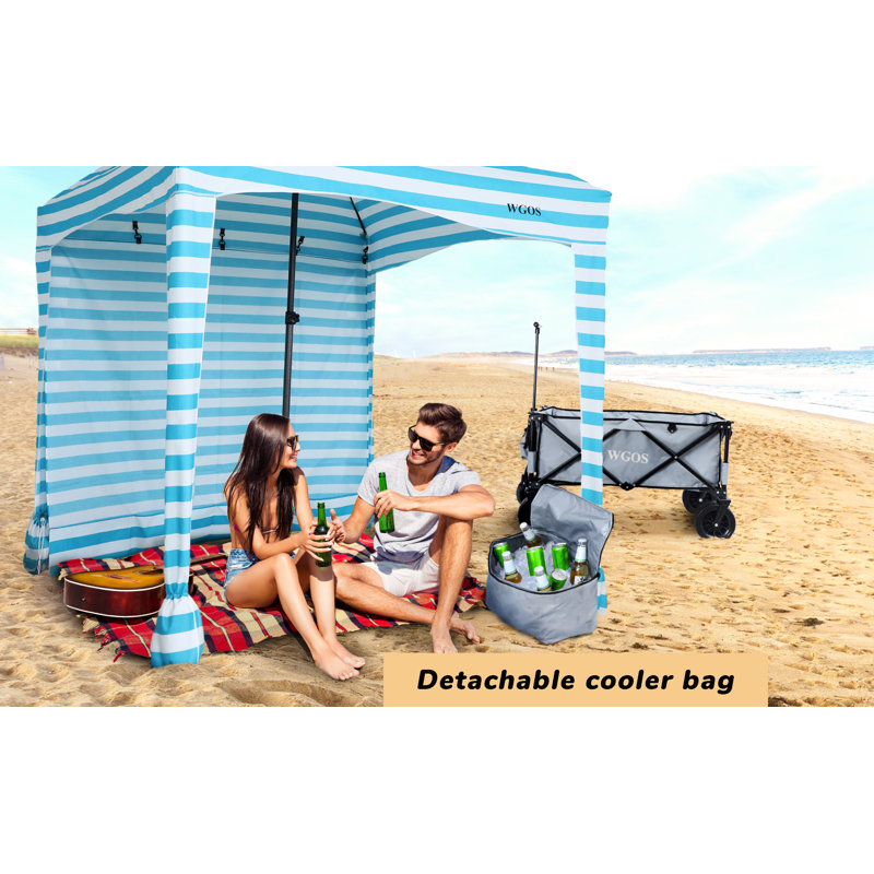 Upgraded Cooler Bag and Cup holder: Detachable storage cooler bag, it can be put inside of the wagon or the outside for extra storage room. Cooler bag dimensions: 25.2’’ x 12’’ x 9.5’’. It keeps the temperature to make your drink and food stay fresh and cold. It has two cup holders on the handlebar side.