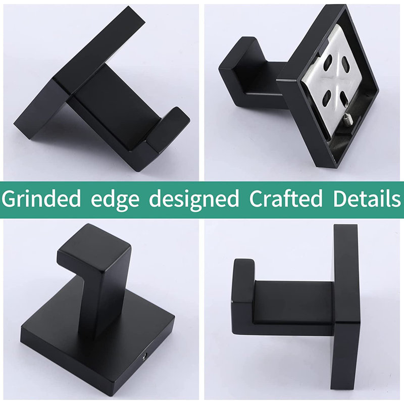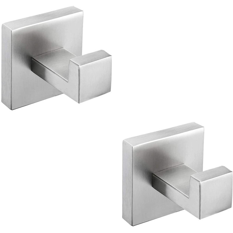 Enduring, peaceful style brings a casual and graceful appeal to your remodeled room, never out of date and reliable. The square design, simple lines, sleek edges, and sensual curves simply express modernity. The whole body is constructed of type 304 premium grade stainless steel, with added 18/10 chromium/nickel content to protect against corrosion & rust and 4 protection layers to make it more durable and more anti-rust. The package includes 1 English instruction, 2 towel hooks, and 1 pack of screws. The size of the hook is a 2.4-inch Towel hook can holder within 10 kgs.