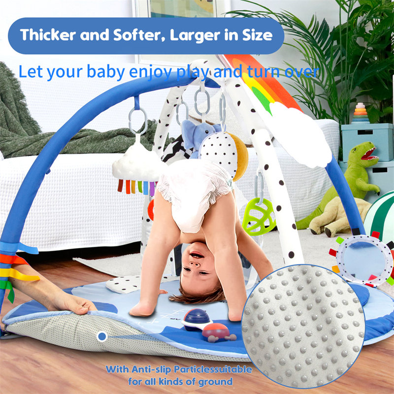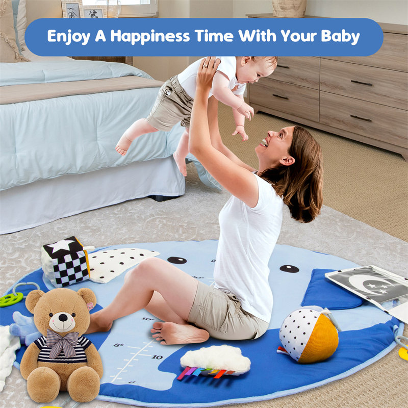 Our baby gym play mats give babies plenty of space for happy tummy activities and games. It can be quickly installed or disassembled in one minute, is small in size, easy to fold and carry, and convenient to store or travel. tummy time mat SIZE: 36*36*22inch.