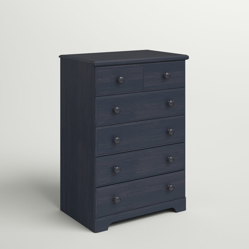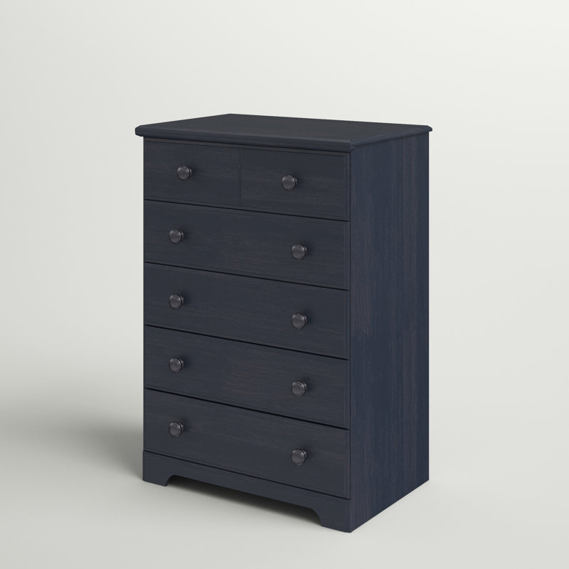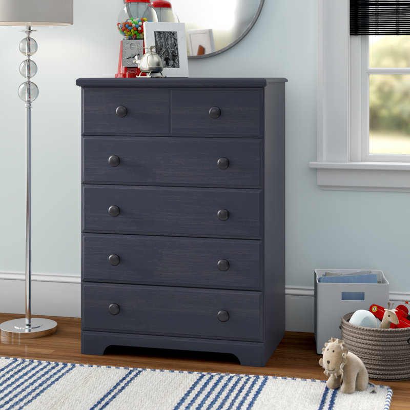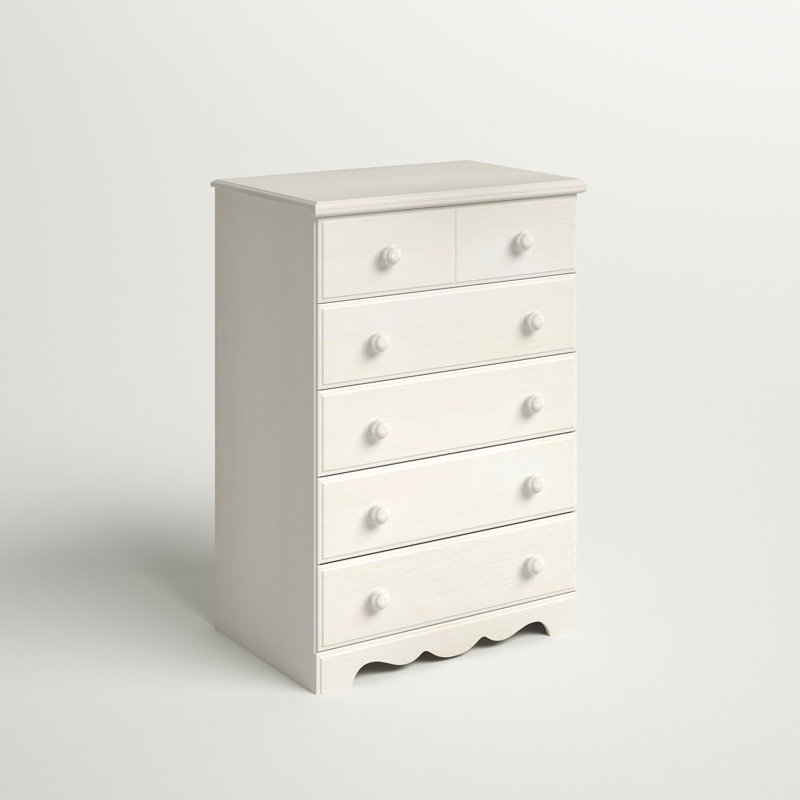 Give your child’s bedroom or nursery an instant upgrade with the classic style of this 27.75†wide 5-drawer chest. It’s made of engineered wood with cam bolt joinery and features an understated rectangular silhouette. This dresser’s five drawers have matching engineered wood knobs, metal slides, and safety stops. You’ll have plenty of room for clothes, accessories, and even toys and games, and the top surface is great for a lamp and your favorite decorative items. An anti-tip device is included for added stability.