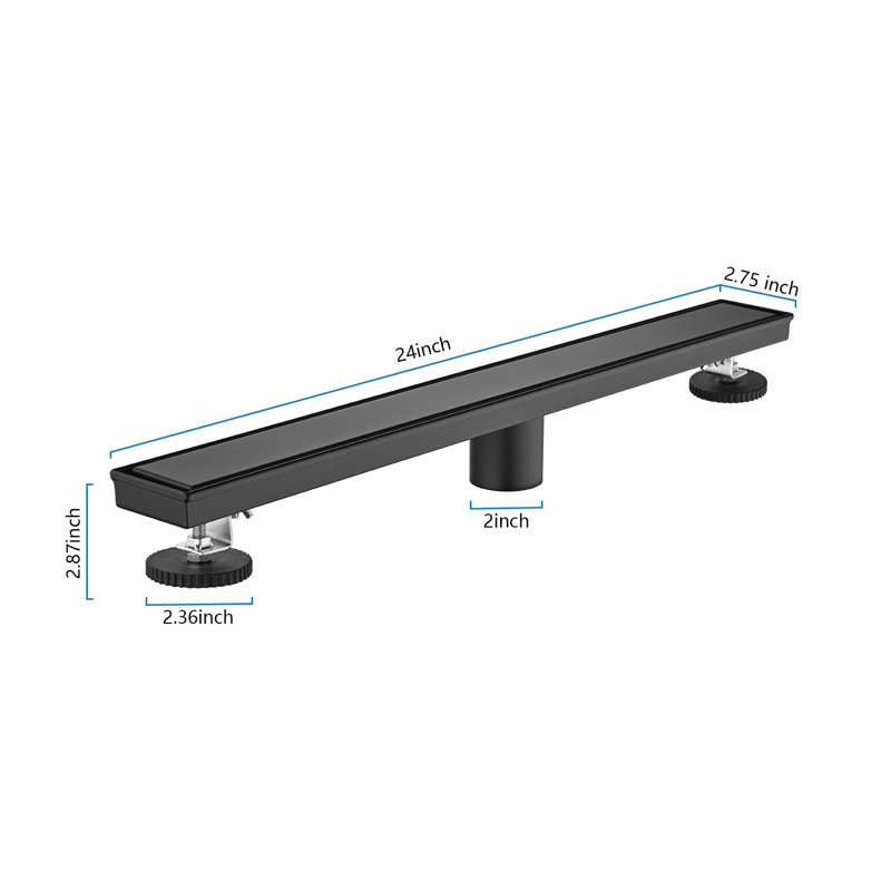 Add functional elegance to your shower Linear Shower Drain. This decorative shower drain is constructed of grade 304 stainless steel to prevent rust for years of use. The linear drain length and width is engineered to achieve the best fit, form and function in a tile shower. Simply change the drain height in your shower by adjusting the leveling feet. The drain corners are perfectly even, making the piece easy to fit in a pre-cut space. The drain is compatible with both PVC and CPE waterproofing liners. With a sloped channel design, you can be sure that water consistently flows to the drain outlet. The included raising tool and removable basket allow you to easily lift the drain cover and remove debris without the hassle of snaking.