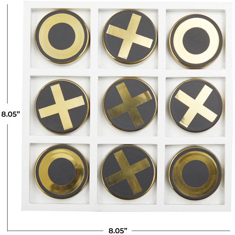 Showoff your competitive side and keep your guest entertain with this game set. Bring a finishing touch to your home with an inviting appeal with this table game set. This classic tic tac toe game set makes for an unapologetically bold table decor on a center table. Designed with felt or rubber stoppers at the base that prevent scratching furniture and table tops, as well as sliding around. This item ships in 1 carton. Stainless steel game set makes a great gift for any occasion. Suitable for indoor use only. Made in India. This is a single gold colored decorative board game. Modern style.