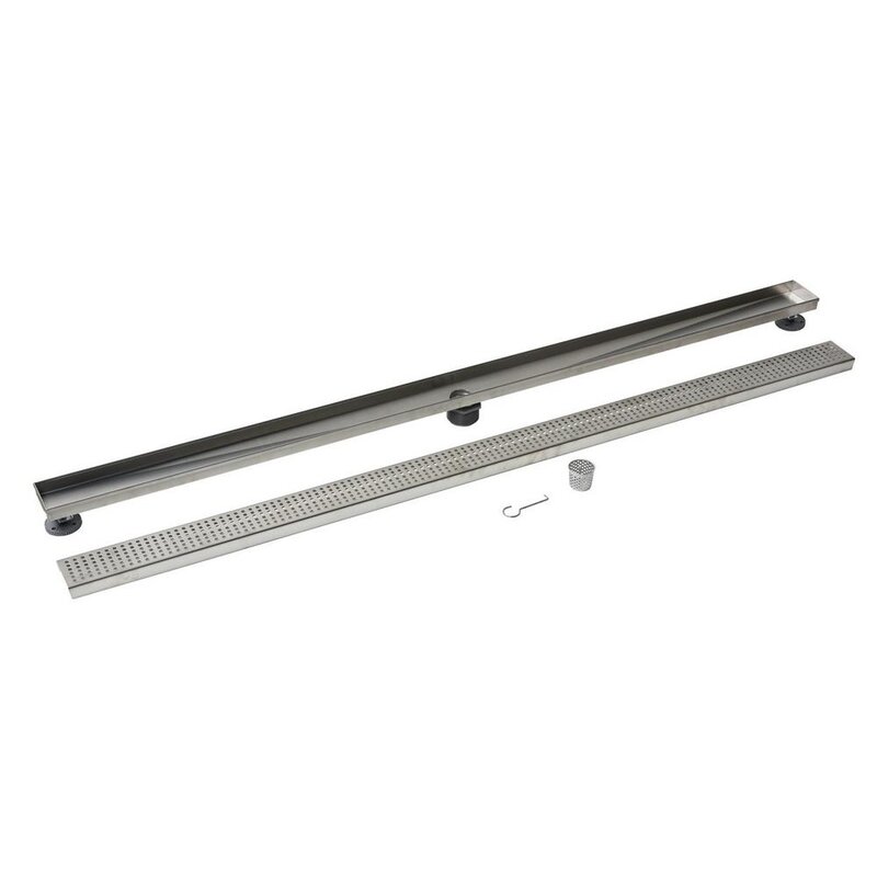 Add functional elegance to your shower with this drain. This decorative shower drain is constructed of 304-degree grade stainless steel to prevent rust for years of use and ensure proper drainage within the wave-shaped grate. The linear drain length and width are engineered to achieve the best fit, form, and function in a tile shower. Designed with the DIY homeowner in mind, the drain is easy to install in a snap. Simply change the drain height in your shower by adjusting the leveling feet. The drain corners are perfectly even, making the piece easy to fit in a pre-cut space. The outlet adaptor with an O-ring attaches to standard drain outlets for a universal fit. The drain is compatible with both PVC and CPE waterproofing liners. With a sloped channel design, you can be sure that water consistently flows to the drain outlet. They included a raising tool and removable basket allow you to easily lift the drain cover and remove debris without the hassle of snaking.