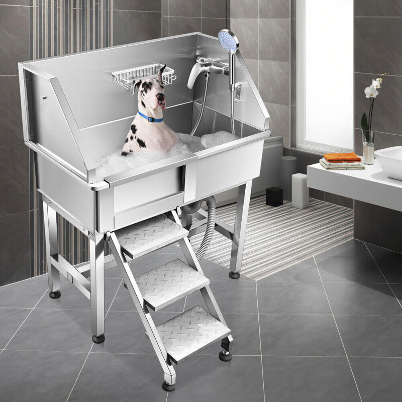 Durable & sturdy – the dog bath tub is made of 304 stainless steel that is high in quality. Heavy duty pet grooming sink is 34” x 18”x 41” as accommodating various sizes of dogs, especially dogs in small or medium size and perform long-lasting use due to its high grade stainless steel material. Maximum capacity is about 178 lbs.