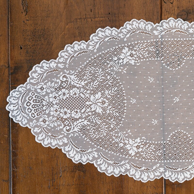 The appeal of simple clean and crisp enriched with lavish lace detail. Intricately-detailed floral motifs against simple point esprit lace make this a classic that enhances almost any décor. Machine wash. Made in the U.S.A.
