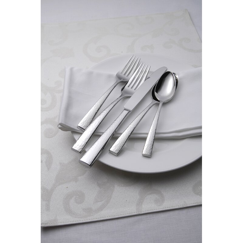 The popular 18/0 steel chef’s table hammered is modern, contemporary, and sparkles with a hammered finish that is suitable for most table setting needs.