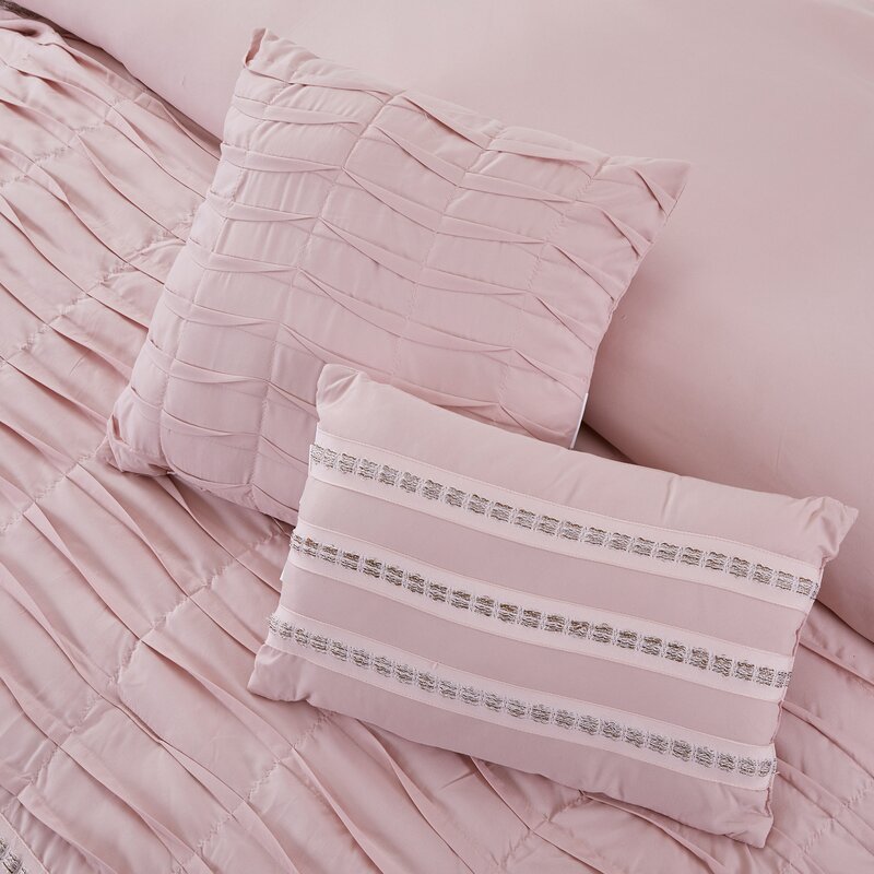 I love this comforter. It is such a pretty light blush colors. I paired it with lavender and gray. Beautiful