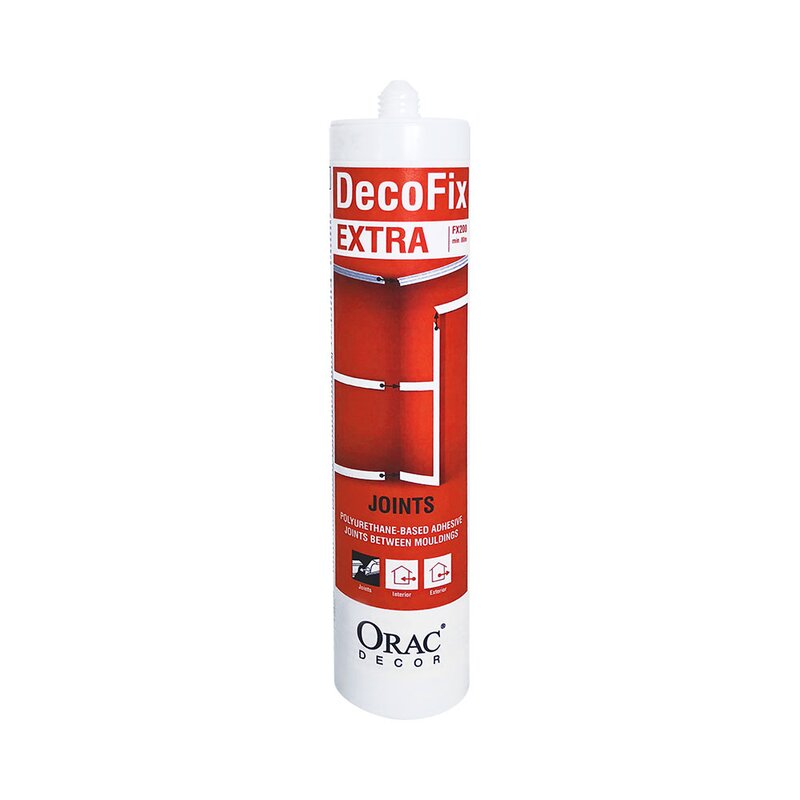 For joining moldings and millwork, this fixes extra creates an unbreakable bond between joined moldings and millwork to prevent any future unsightly cracking or pulling apart of the sections. This fix extra is offered as a cartridge that is designed to fit into a standard caulking gun. Excess adhesive can be easily wiped away using acetone.