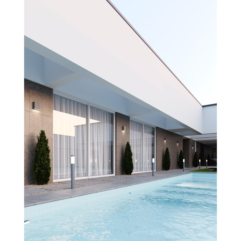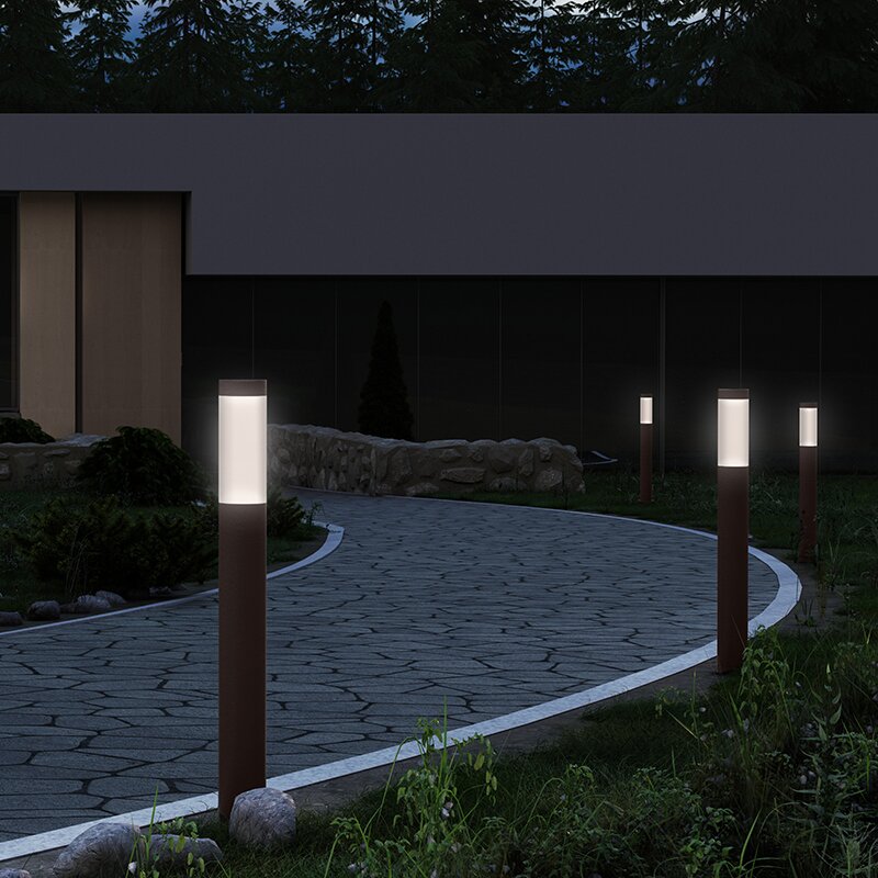 Round columns of light emit the glow of smoothly reflected LED illumination. Round Columns set an architectural rhythm to an exterior landscape.