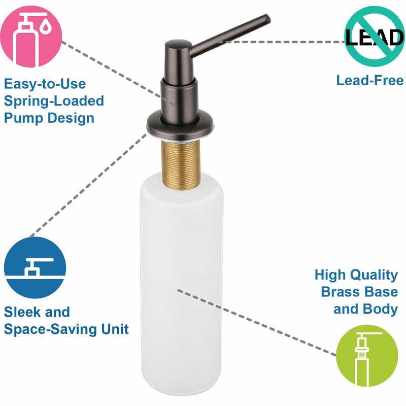 Deluxe soap dispenser has a sleek and modern design that will complement, or provide an upgraded look, to any kitchen or bathroom sink. It features a sturdy high-quality brass base and body for extended lasting use. And with tarnish-free finishes, you’ll be able to easily find the perfect hue to match your style.