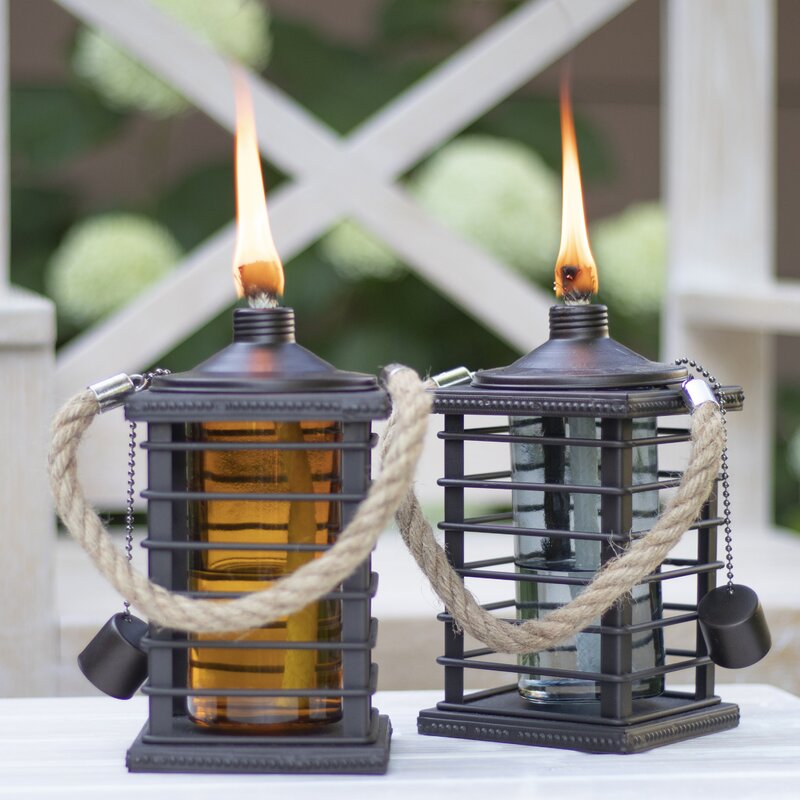 You’ll love the versatile style these tabletop torches bring to your space! The straw rope handle and black metal cage detailing give them a unique look that works with any style, then choose between wine bottle green, gray, or smokey brown for the glass and it will feel like these tabletop torches were made for you. Add their citronella-scented or Scatterbug torch fuels to use outdoors as a part of your barrier of protection or use an indoor-friendly torch fuel like their Nature’s Flame to take these torches indoors!
