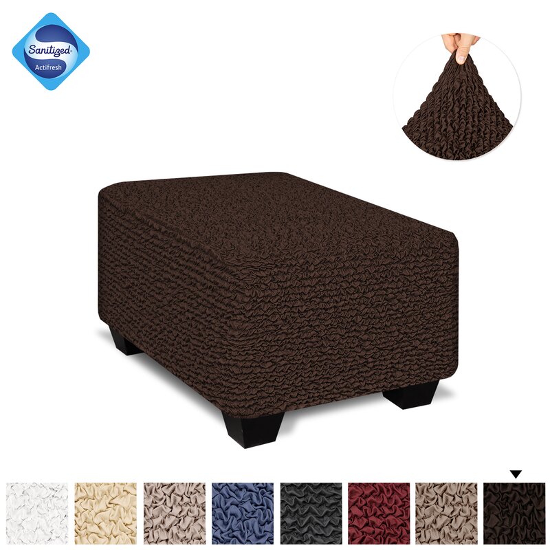 Ottoman cover fits most pouf. Slipcover is made of patented stretch bi-elastic fabric. Furniture covers fitting ottoman 20â€- 32†wide, 27″-42″ length, and 13″-23″ height. Slip covers for furniture ottoman stools are certified. This item is ideal for homes with children and pets or anyone seeking an economical solution for furniture protection from daily wear, tear and stains.