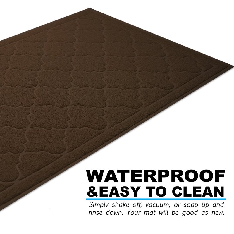 This mat is wonderful. It is large and thick and of great quality. I love to put this type under the edge of the litter box. It collects a lot of loose cat litter. It is brown in color and easy to shake out. Would recommend