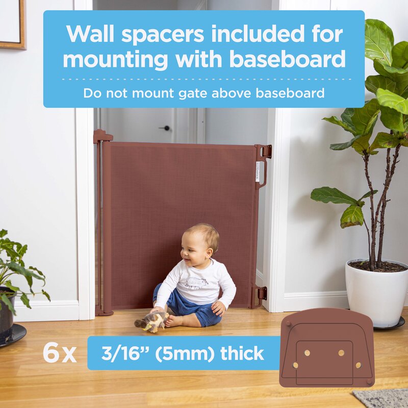 Installation was made easy with really good instructions, and the spacer plates made for a perfectly even install against a tall baseboard. I did purchase 8 2” wood screws to ensure a deep enough “bite” into the studs behind baseboard and drywall.Very happy with this gate