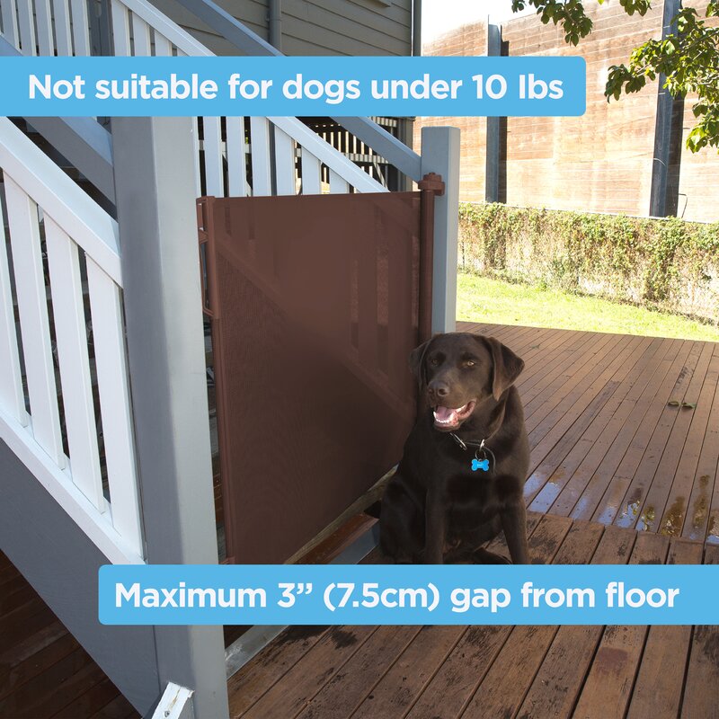 Works wonderfully for keeping our dogs from the stairs/accessing upstairs while we’re away. They haven’t attempted to jump over the gate, even though both of them easily could (90lb German Shepherd and 70lb Lab/Pit mix). It is JUST wide enough to stretch across the bottom of our wide stairs, which is why I went for this size. The stairs are carpeted, and the GSD will chew carpet when stressed/anxious about being home without us, and this gate was the answer. The dogs have free roam of the entire downstairs and haven’t messed with the gate at all. The gate is slightly see through, which is fine, however it is a little difficult to pull across and latch or unlatch with one hand, but that’s fine with us. I do recommend reinforcing where you attach the side with the roll-up part, because ours started to get loose, but with some reinforcement into a stud it holds up perfectly.