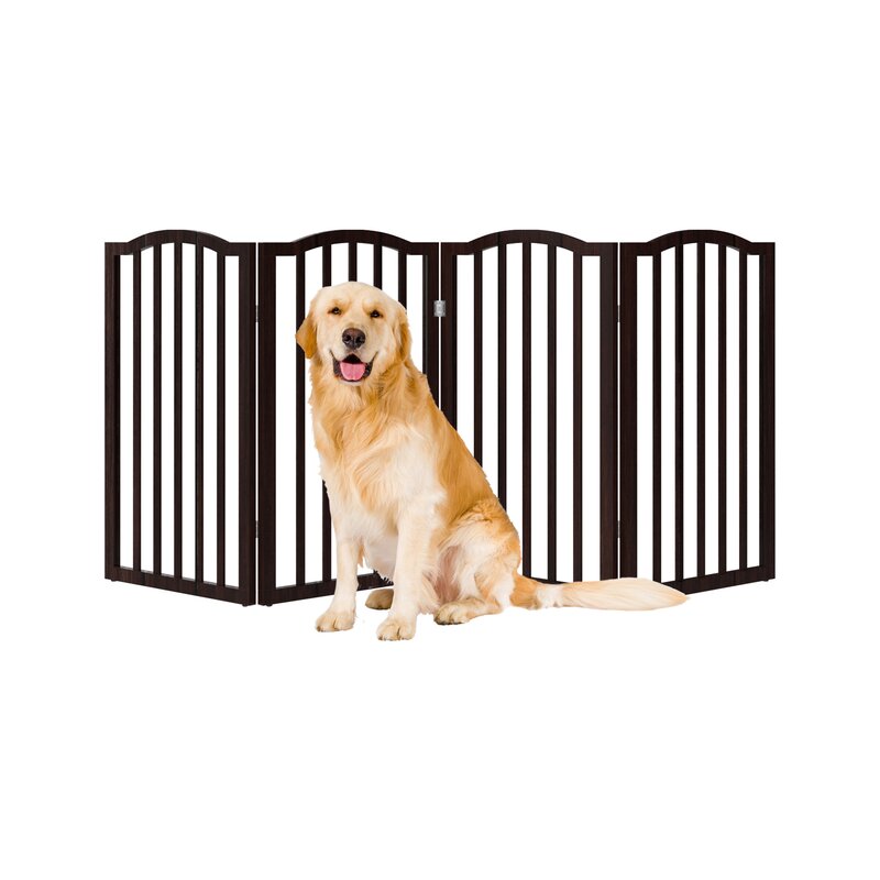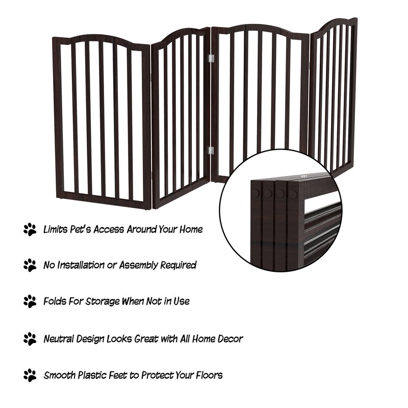 Extra Wide: Limit your dog’s access around your home with this 73.5″ wooden pet gate that is ideal for 45-60″ wide doorways. This pet fence safely prevents pups from sneaking through the fence with narrow 2″ openings between each pole.