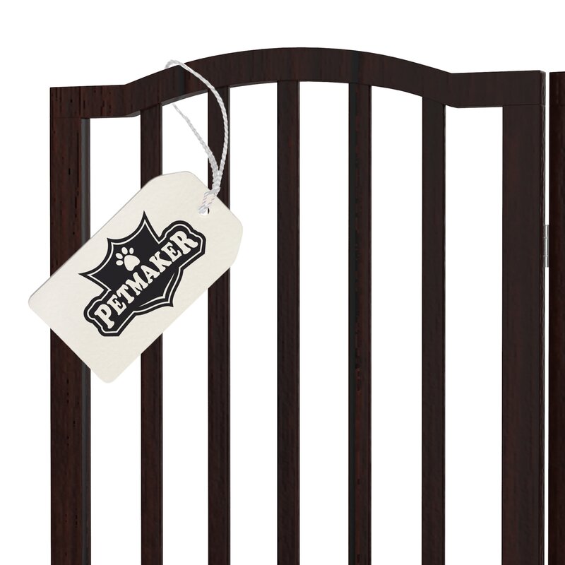 Keeping your pets contained without sacrificing style and functionality has never been easier with the Freestanding Pet Gate by Petmaker. Recommended for pet use only, this pet fence safely prevents pups from sneaking through the fence with narrow 2″ openings between each pole. This four-panel pet barrier folds flat when not in use and does not require any assembly or installation upon arrival. Constructed of MDF with a contemporary style smooth finish, this stylish pet barrier will look great blocking doorways, hallways, and stairs in your home.