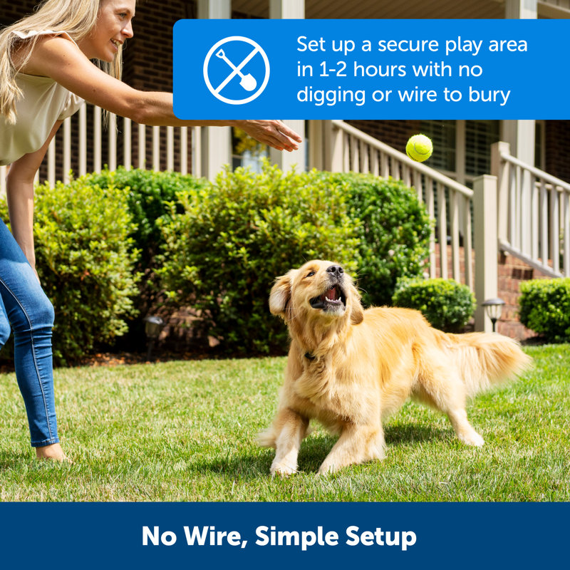 NO DIGGING OR WIRE TO BURY: Sets up in just a few hours; a wireless boundary allows you to create a secure barrier around your yard to protect your pets without the time or hassle of burying wires