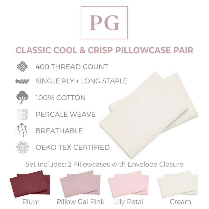 Our Percale pillowcase pair is your pillow’s best friend with cool and crisp breathability for ultimate temperature comfort. They are 400TC 100% cotton Percale woven for that cool, crisp 5-star hotel sleep every night. Percale is plain in weave and characterized by a matte finish and crisp hand.