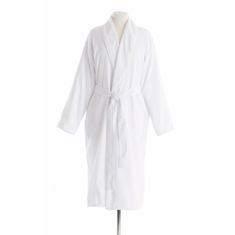 Silky, supple, suede microfiber gabardine twill exterior makes a fluid outer layer combined with a body-skimming lining of the softest cotton in this update on a classic spa robe.