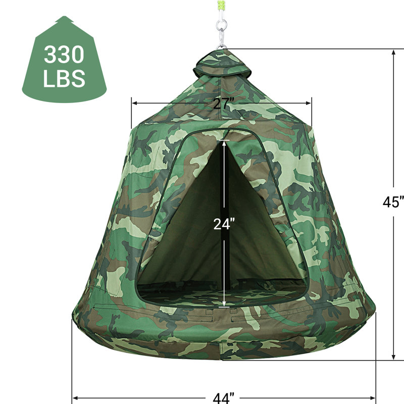 HIGH-QUALITY MATERIAL: Hanging tree tent is made of heavy-duty 600D Oxford, with double stitch design, which is more UV and waterproof, and durable. And it is thicker than 420D fabric on the market, and has better abrasion resistance and tear resistance. Overall frame consists of 4 steel pipe with a diameter of 1 inch plus 2 reinforced D-rings. It is durable and has a maximum capacity of 330 pounds, which is enough to accommodate 2-3 children.