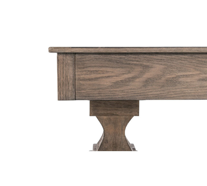 This shuffleboard table stands proudly on a generously proportioned solid oak trestle base. Swathed in an antique silver finish, this table is elegantly unique.