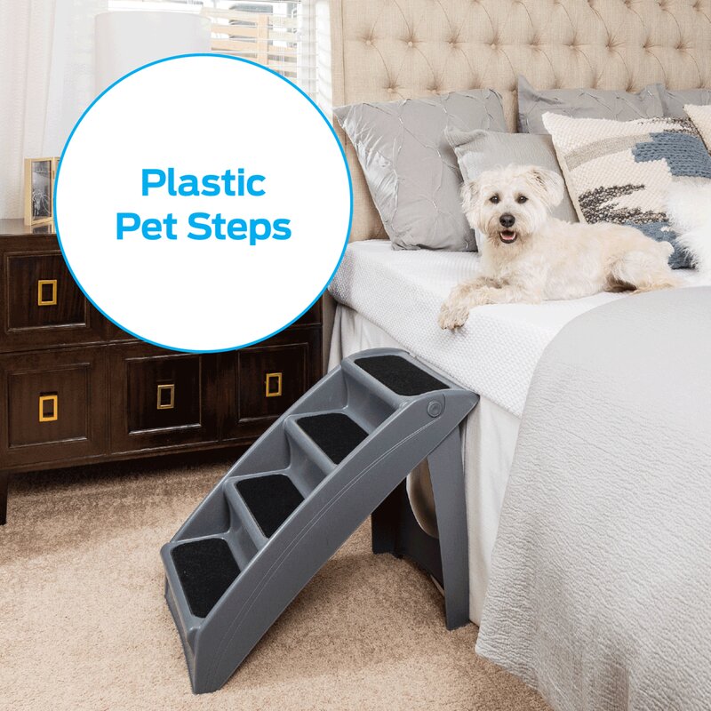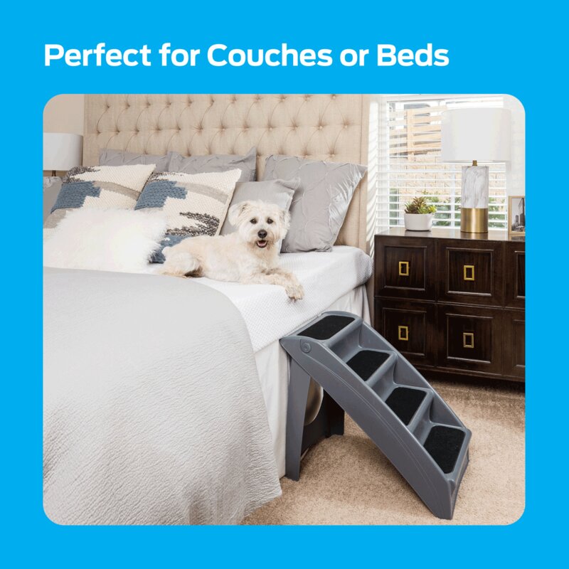 The steps are a safe and easy way to help your pet reach their favorite place. Safety side rails and step treads are built into the design so your pet can climb up and down with confidence. it’s the perfect size for couches and beds and folds away for convenient storage or travel.