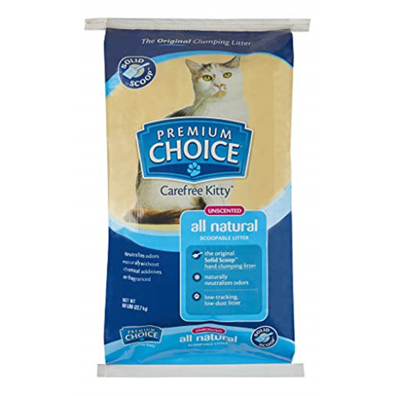 This clumping original features clay particles that bond together when soiled. along with the odors. This clumping formula creates solid clumps that don’t crumble or break when being scooped out. All usable litter remains in the box to keep litter changes and any extra dust to a minimum. Carefree, indeed. Available in 16lb Jug or 25lb, 40lb or 50lb bags.