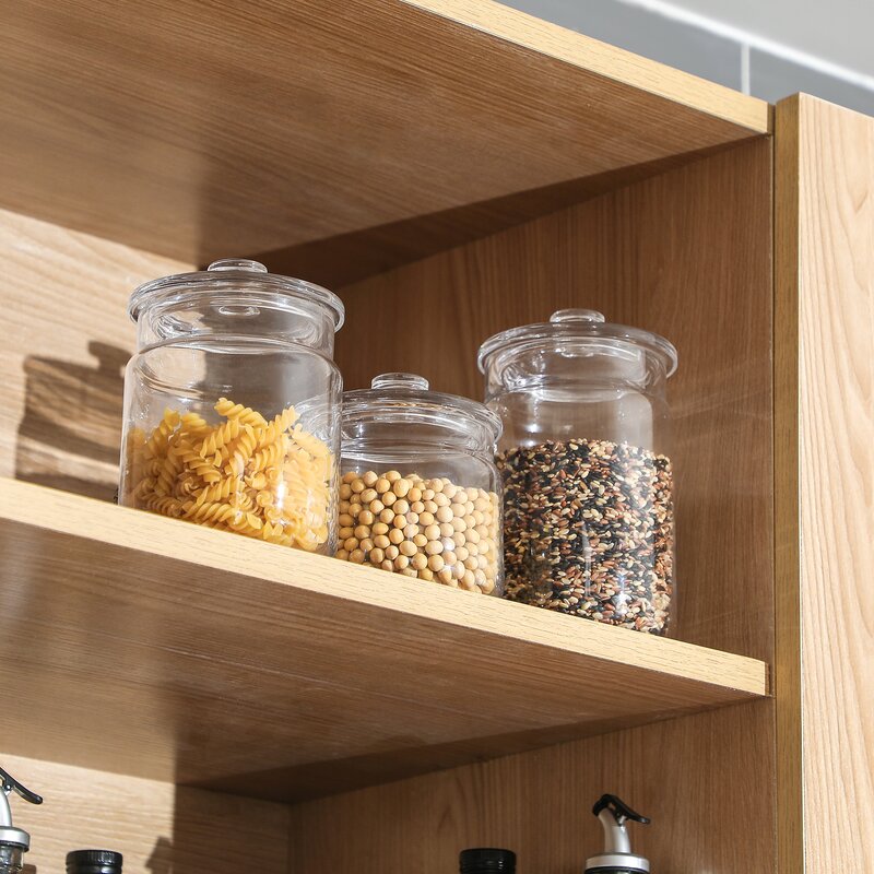 3 sizing all in one. Keep your dry food in storage. crystal clear glass can bring your storage to the next level. Don’t miss this great canister set.