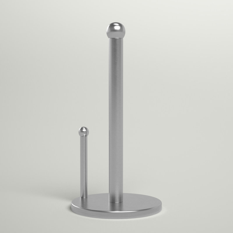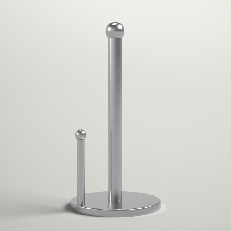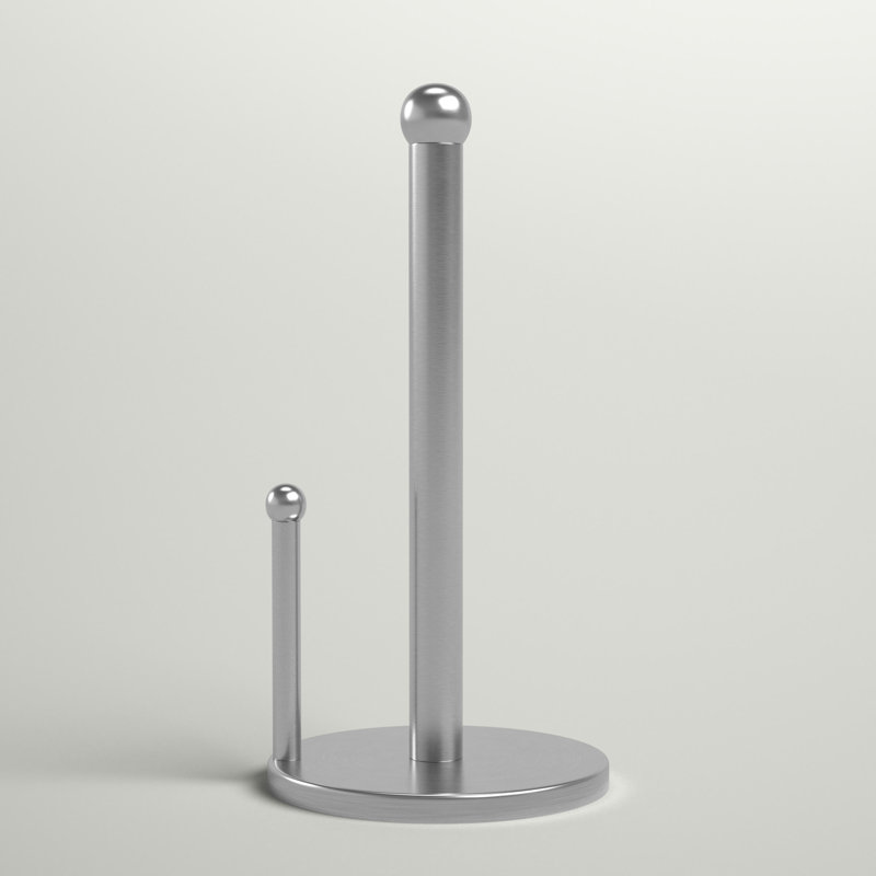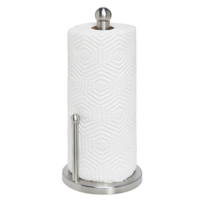 Just in case of spills and splashes, keep paper towels close by with the help of this paper towel holder. It’s made from stainless steel in a simple, easy-to-match silver finish that looks great on your counter. This holder features a circular base with a center rod and round finial that holds your paper towel roll upright. A shorter rod on the perimeter of the base makes tearing off the sheets a little easier.
