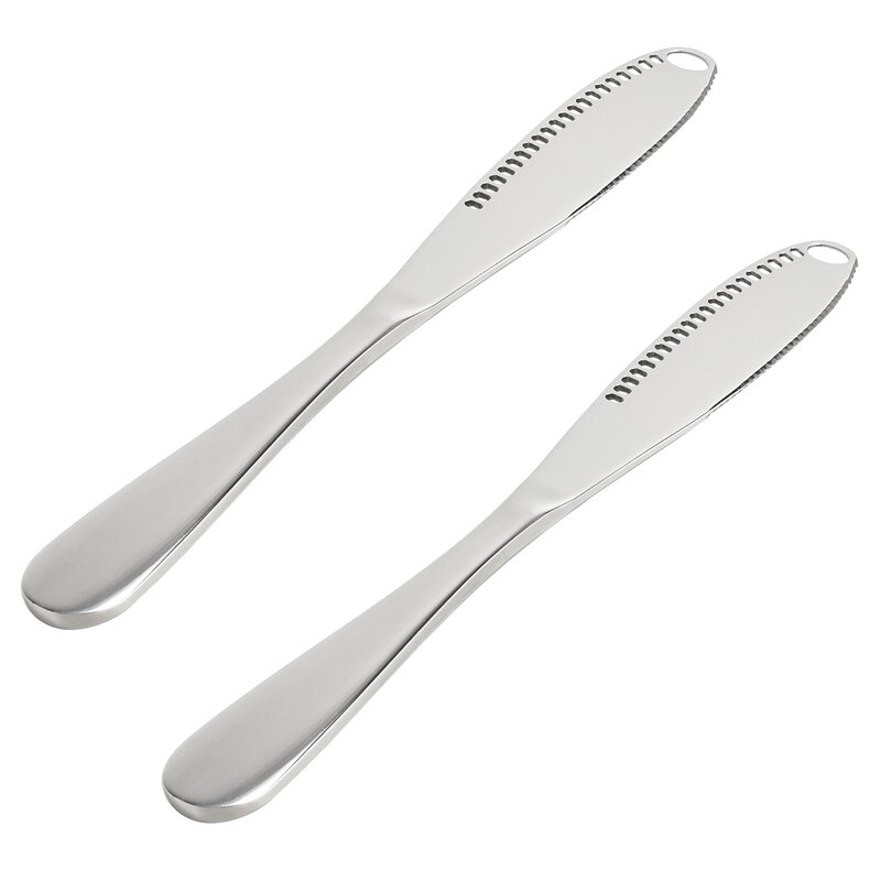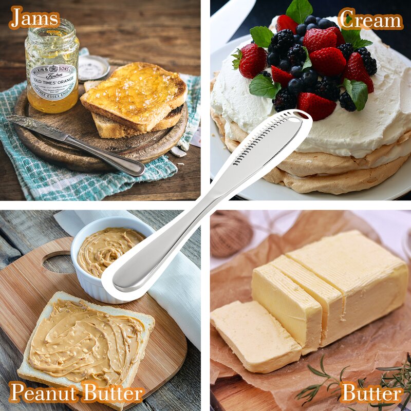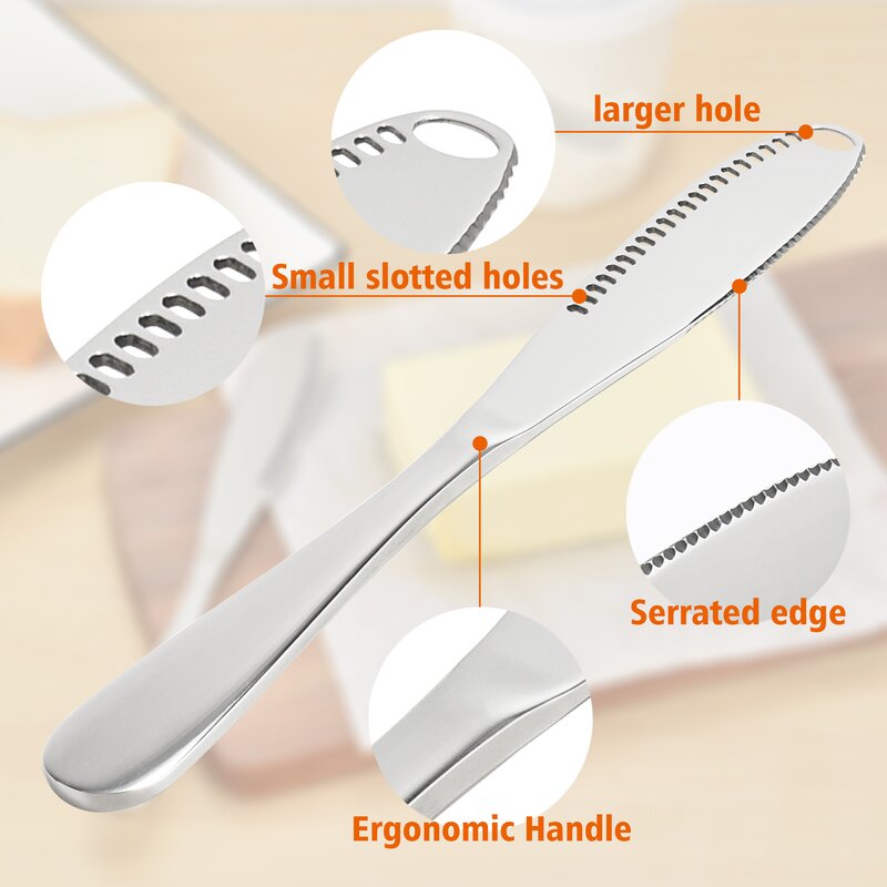 These butter knives are suitable for the food industry, home, cafes and restaurants. Butter knife with holes and Serrated Edge helps to spread the right amount of butter/jams/ketchup/creams/peanut butter on your toast easily!