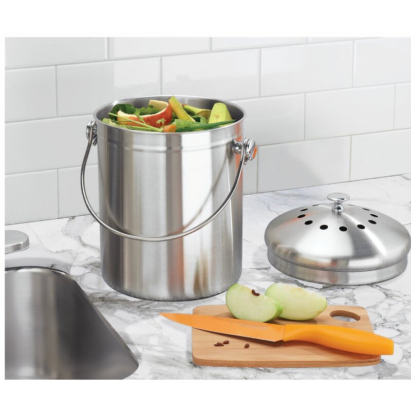 Stainless steel kitchen compost bin: provides an eco-friendly way to dispose of and repurpose food scraps such as vegetable peels, fruit rinds, egg shells, coffee grounds, and more
