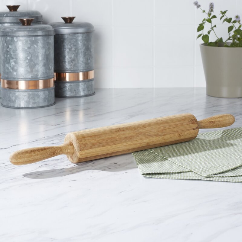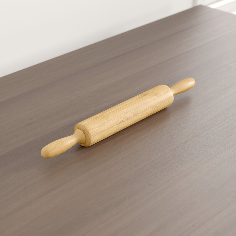 This classic rolling pin is an essential addition to your cookware collection, whether you love hosting dessert swaps or you’re just getting into making pizza from scratch. Made from wood in a light bamboo finish, this piece strikes a cylindrical silhouette stretching 17.5″ long to suit most baking needs. The handles move separately from the roller to make flattening ravioli for an Italian feast or stretching out dough for apple pie a breeze.